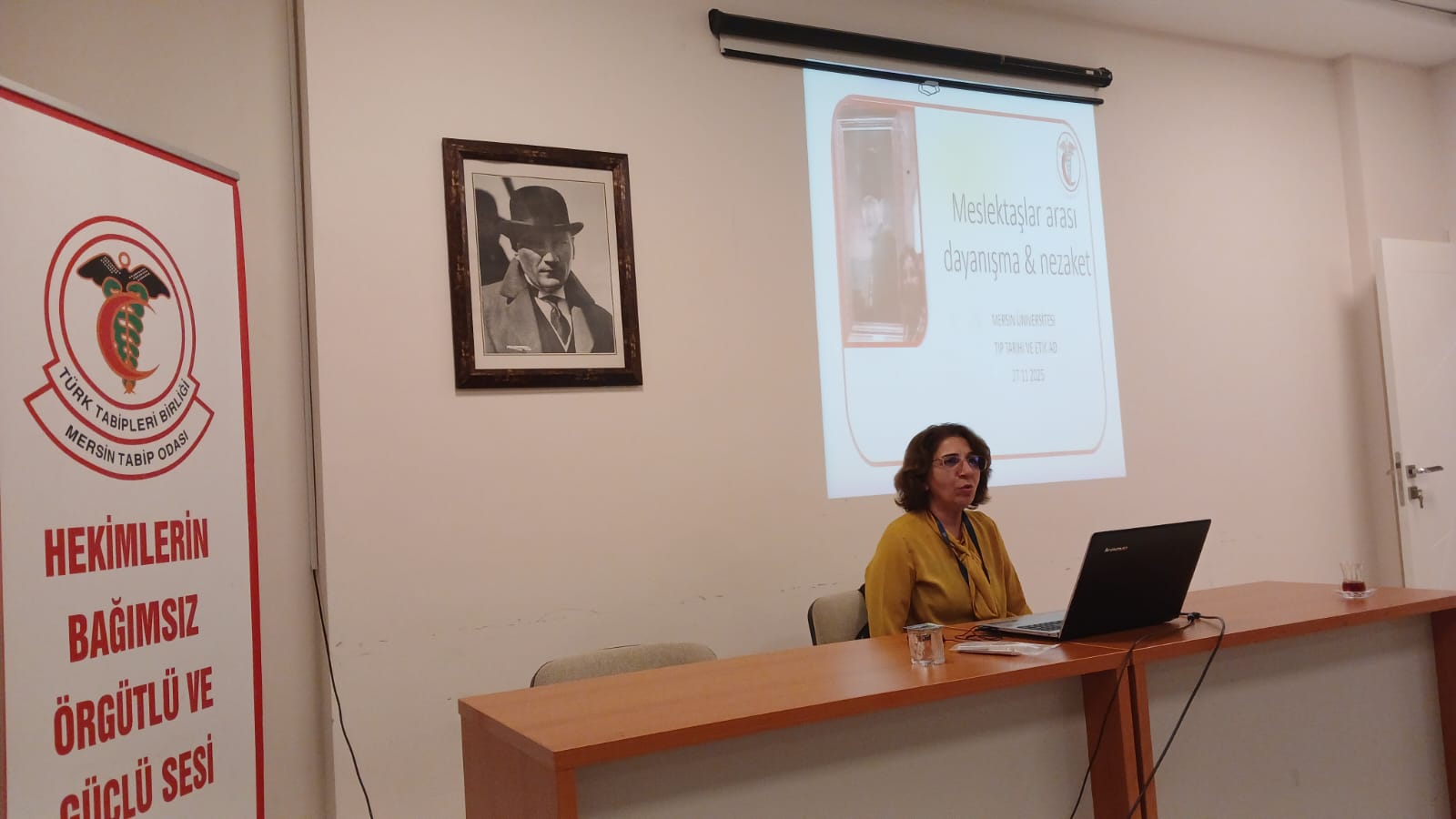 Mersin Üniversitesi Tıp Tarihi ve Etik Anabilim Dalı’ndan değerli hocamız Prof. Dr. Oya Ögenler’in “Meslektaşlar Arası Nezaket ve Dayanışma” başlıklı konuşması Odamızda gerçekleştirildi.